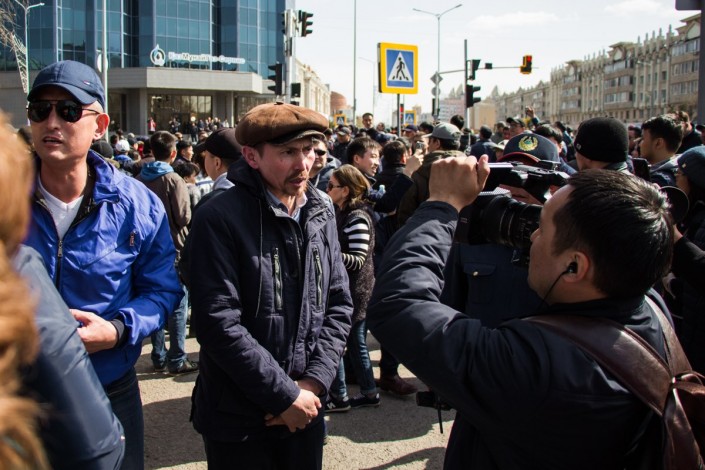 "Вы проводите несанкционированный митинг. Вы должны были получить разрешение. Вы можете быть привлечены к административной ответственности. Попрошу вас разойтись..." - обратился к собравшимся в Алматы прокурор Медеуского района Асхат Жакупов.
