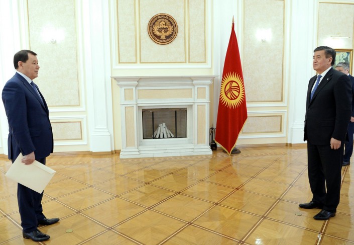"Нет ближе народов, чем кыргызы и казахи" - Жээнбеков Посол Казахстана Карим Кокрекбаев на встрече с президентом Кыргызстана Сооронбаем Жээнбековым. © president.kg