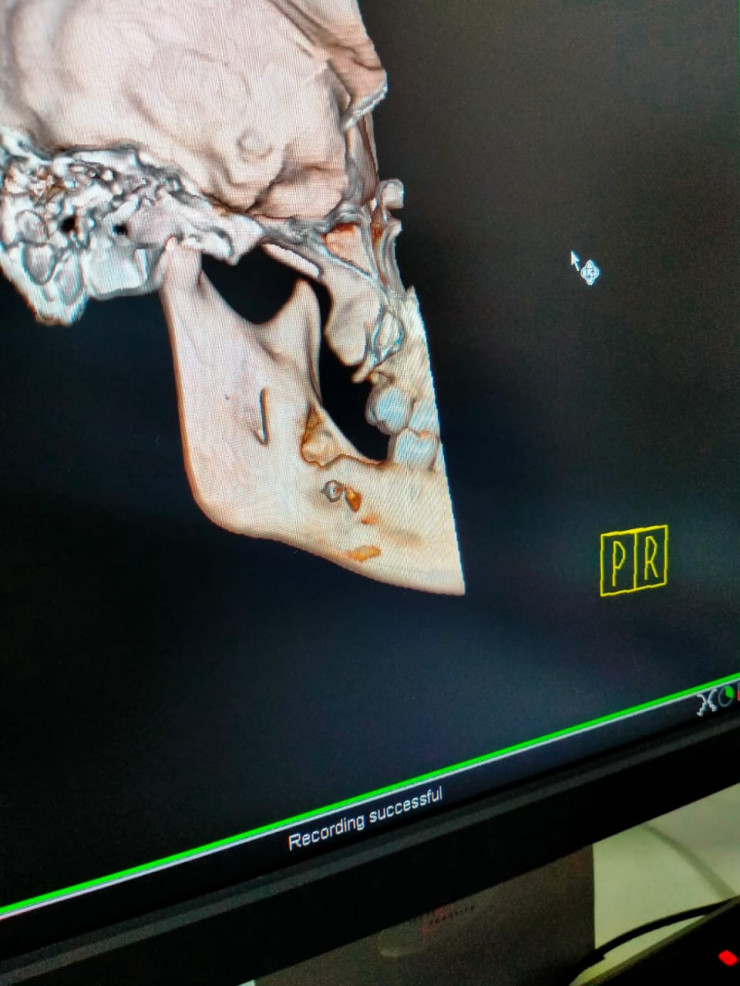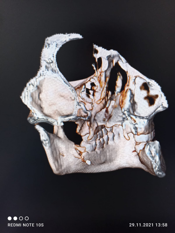 Потом были еще две операции - хирурги чистили гной. Как потом выяснилось, и это показали снимки КТ, под коренным зубом виднелся металлический осколок. Возможно, его оставил стоматолог.