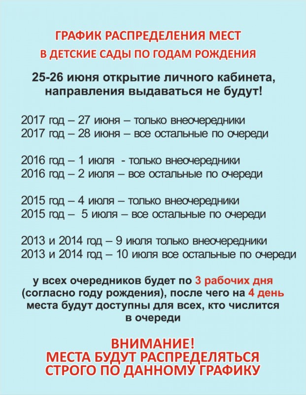Позднее в управлении образования предоставили более подробный график распределения мест, внеочередники - это дети военнослужащих и сотрудников специальных государственных органов.