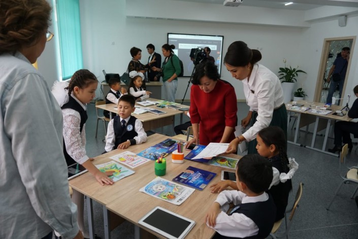 Президент Казахстана 1 сентября посетил новую столичную школу-лицей № 85, сообщает корреспондент Tengrinews.kz.
