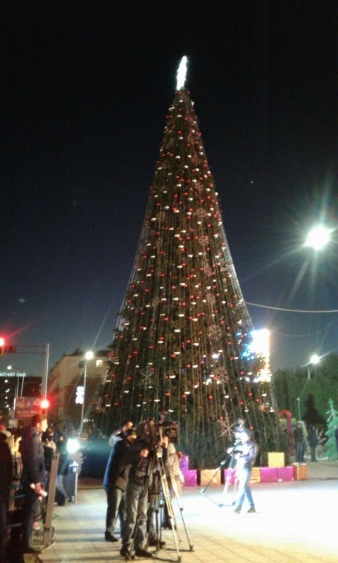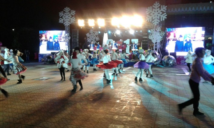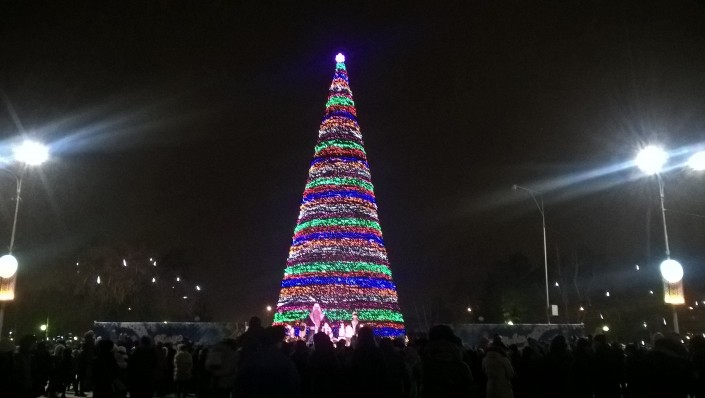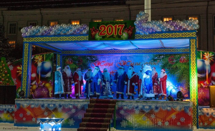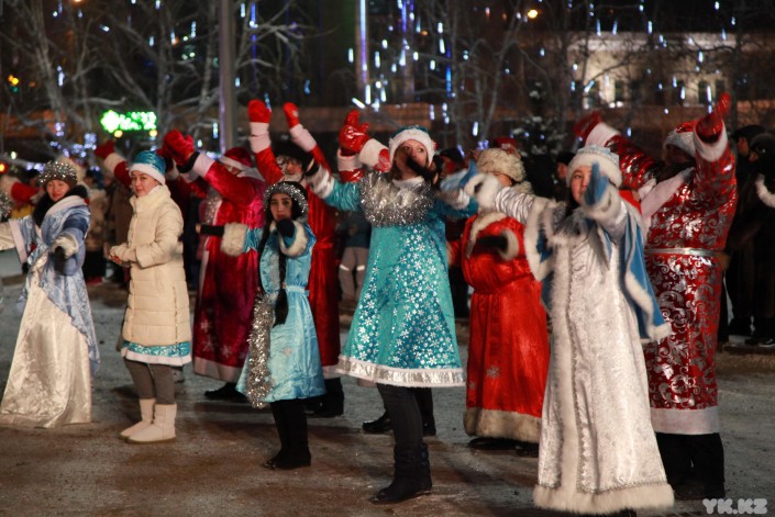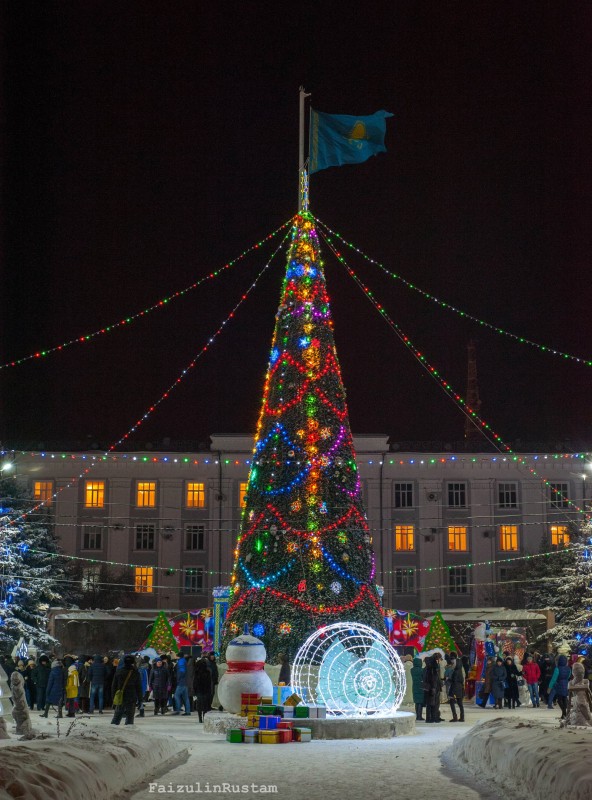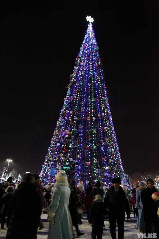 На центральной площади Петропавловска зажгли огни на 18-метровой елке. Она украшена игрушками и 60 светодиодными гирляндами. В церемонии принял участие аким Северо-Казахстанской области Ерик Султанов. Аким области вместе с детьми нажал на символическую кнопку, и чудо свершилось. Елка замигала разноцветными гирляндами. Все это сопровождали взрывы фейерверков и хлопушек с конфетти.