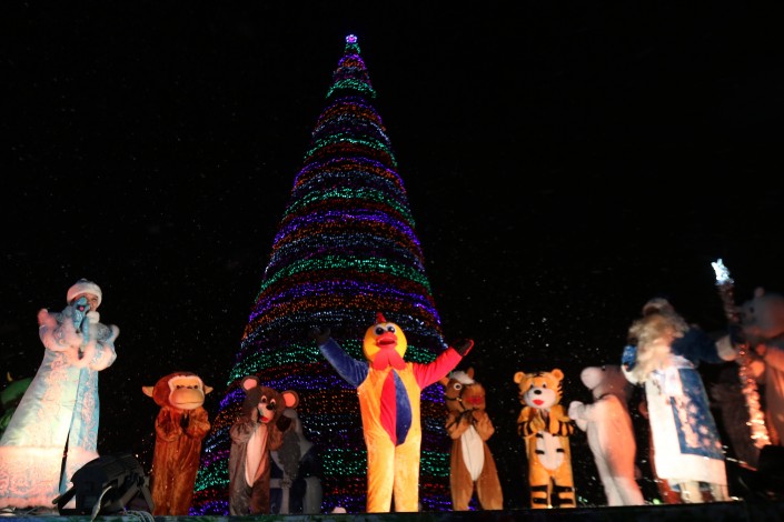 В Усть-Каменогорске главная городская елка зажглась еще на минувших выходных. Традиционную акцию по торжественному зажжению огней на новогоднем дереве "Елочка, гори!" предварил парад Дедов Морозов. Мероприятия, посвященные празднованию, прошли на площади Республики перед зданием областного акимата, где и установлена елка. Многие примерили разнообразные костюмы Дедов Морозов и Снегурочек. В торжестве приняли участие больше сотни новогодних персонажей. А после того как огни на елке были зажжены, начался праздничный концерт.