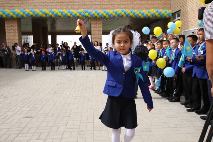В этом году в первый класс пошли 340 тысяч маленьких казахстанцев. Каждый из них к первому учебному году в своей жизни получил подарок от имени Президента Казахстана Нурсултана Назарбаева - книгу "Mенің отаным - Қазақстан". Всего в Казахстане сегодня открыли свои двери 7,5 тысячи школ.