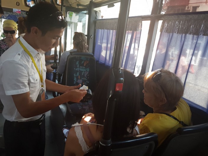 Все пассажиры платили наличными по 150 тенге либо картой. Ревизорам попался только один пассажир, который не оплатил проезд. Он объяснил это тем, что проехал всего одну остановку и собирался на выходе заплатить кондуктору.