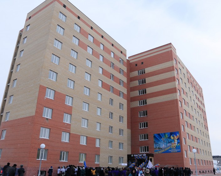 Общая площадь оснащенного в соответствии со всеми стандартами общежития составляет более 8,6 тысячи квадратных метров. Для получения знаний и эффективного использования свободного времени имеются читальный зал, доступ в Интернет, тренажерный зал, комната отдыха и так далее. На строительство общежития было направлено порядка одного миллиарда тенге внебюджетных средств.