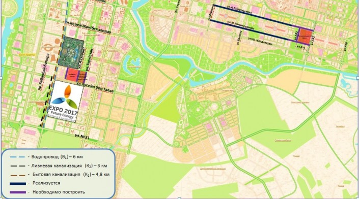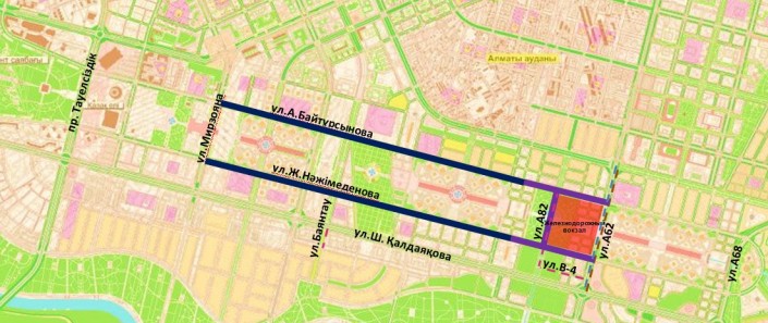 - улицы №41 и №42 от улицы Сатпаева до нового железнодорожного вокзала;