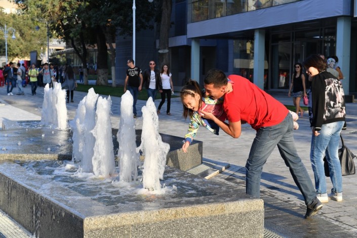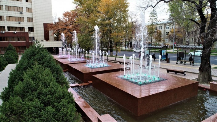 Построен фонтан между Национальной библиотекой и улицей Байсеитовой. Отремонтирован неработавший фонтан перед Государственным академическим русским драматическим театром имени Лермонтова.
