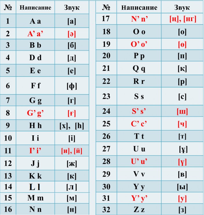 В приложении к указу представлен новый алфавит казахского языка на латинской графике. Выглядит он следующим образом: