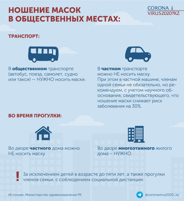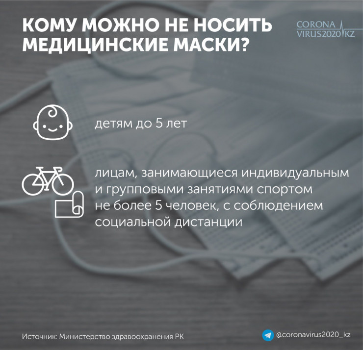 В каких случаях казахстанцы могут не носить маски на улице, объяснили в Министерстве здравоохранения Казахстана, передает корреспондент Tengrinews.kz.