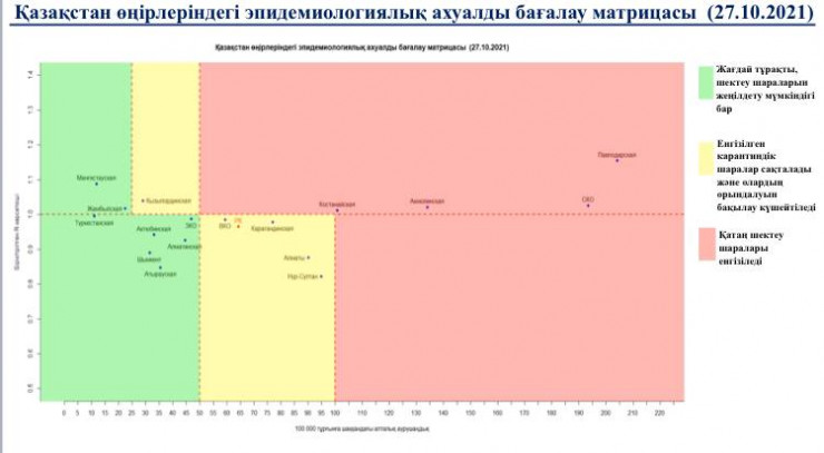 Согласно матрице оценки эпидемиологической ситуации на 27 октября: