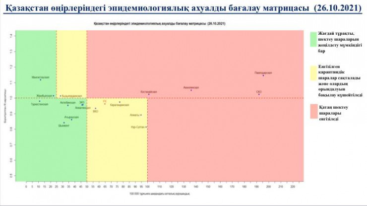 В "желтой" зоне находятся Нур-Султан, Алматы, Карагандинская, Кызылординская и Восточно-Казахстанская области.