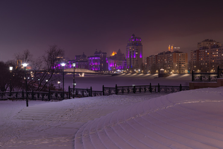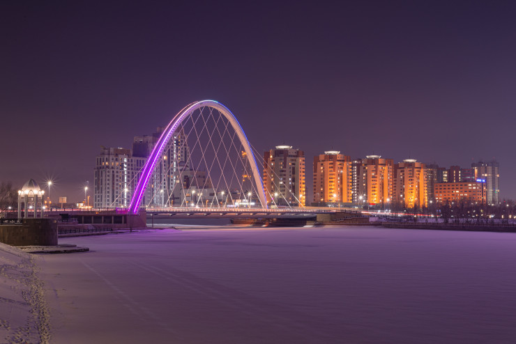 Нур-Султан стал сиреневым в честь Дня недоношенных детей Фото: Салават Нургожаев