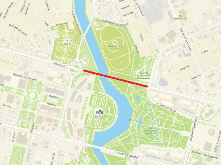 "В связи с проведением ремонтных работ с 16 июля по 15 августа будет частично перекрыто движение для автотранспортных средств на участке дороги по мосту М-1 от проспекта Бауыржана Момышулы до транспортной развязки на пересечении проспекта Мангилик Ел и улицы Сарайшык", - говорится в сообщении.