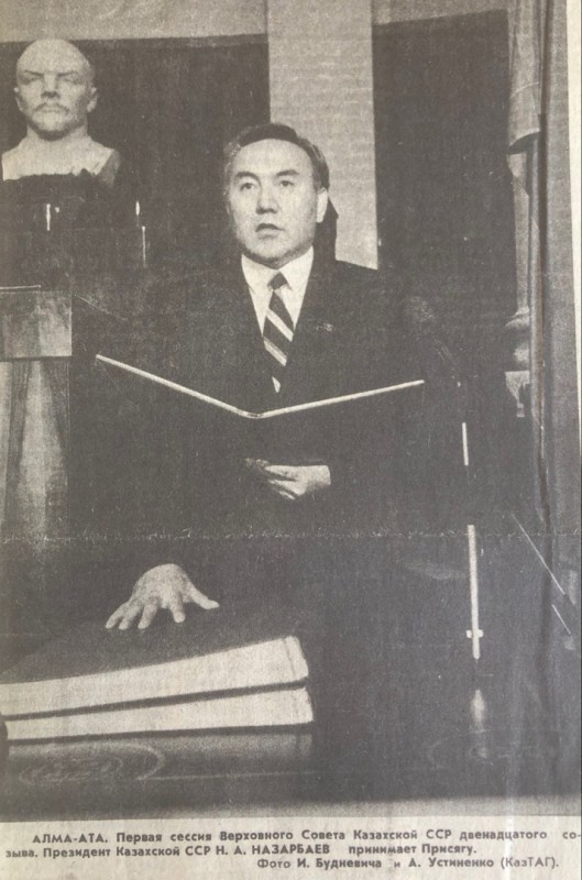 Клятву Нурсултан Назарбаев принес на первой сессии Верховного Совета Казахской ССР двенадцатого созыва. Пленум Центрального комитета Компартии страны единогласно принял документ, в котором говорилось о выдвижении кандидатуры первого секретаря ЦК Назарбаева на пост Президента.