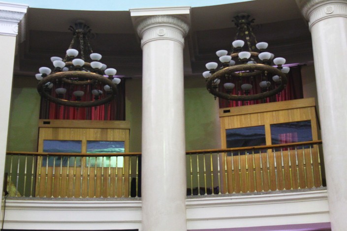 "Конструкция круглого зала слабая. Если по зданию землетрясение не чувствуется, то здесь все ходит ходуном. И даже видно, как купол двигается. Как-то было землетрясение 4 балла, здесь все люстры звенели, каждая из них по 1,5 тонны. Хрустальный звон был. Было видно, как двигается купол. Это где-то 2004 год", - делится воспоминаниями Ирина Михайловна.