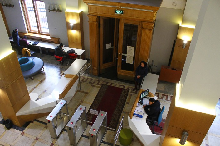 Ирина Михайловна работает в этом здании с 30 лет. В начале 90-х она убирала кабинеты. Женщина оказалась стеснительной и попросила ее не фотографировать. Она пережила несколько смен владельцев уже исторического здания.