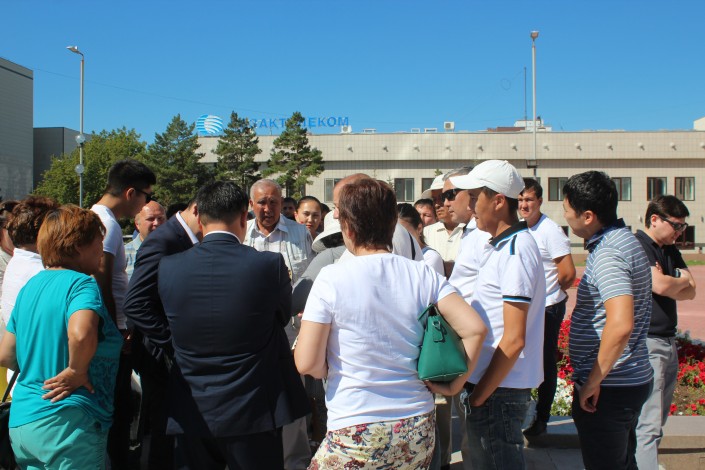 Сотрудники госорганов тут же предложили нескольким представителям группы дольщиков пройти в акимат для переговоров, что те сразу же и сделали.