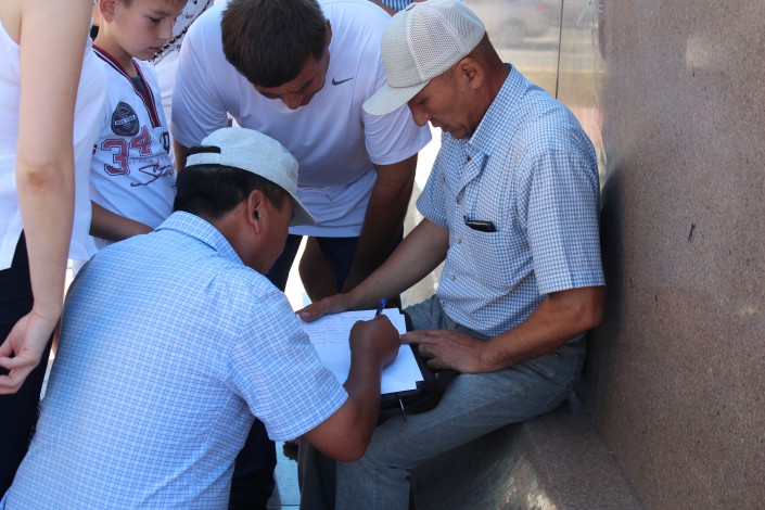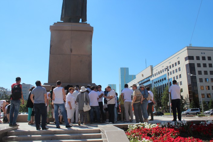 Обманутые дольщики Астаны устроили встречу в тени Абая Фото Tengrinews.kz©