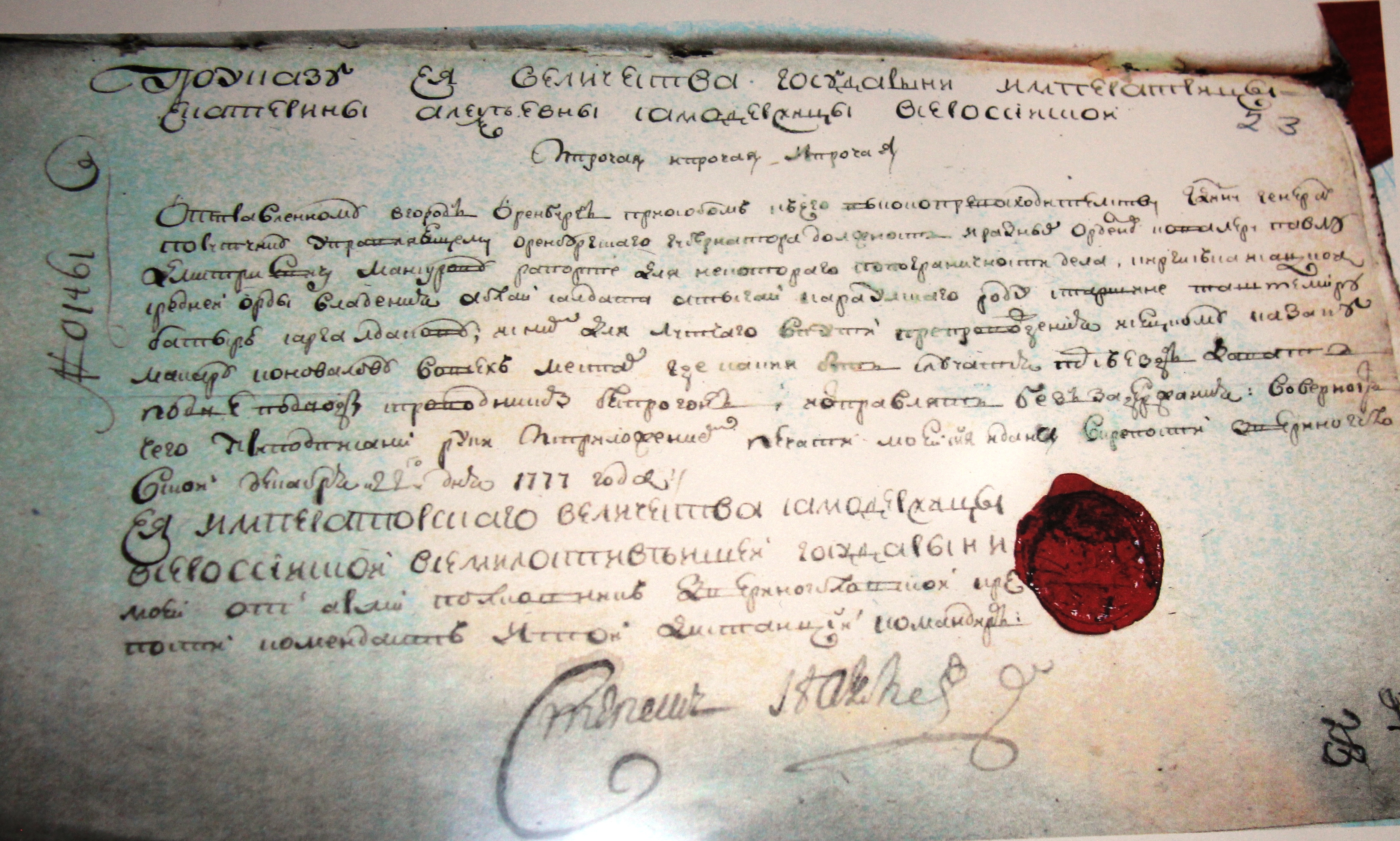 На фото приказ Ее Величества государыни императрицы Екатерины Алексеевны от 22 декабря 1777 года.