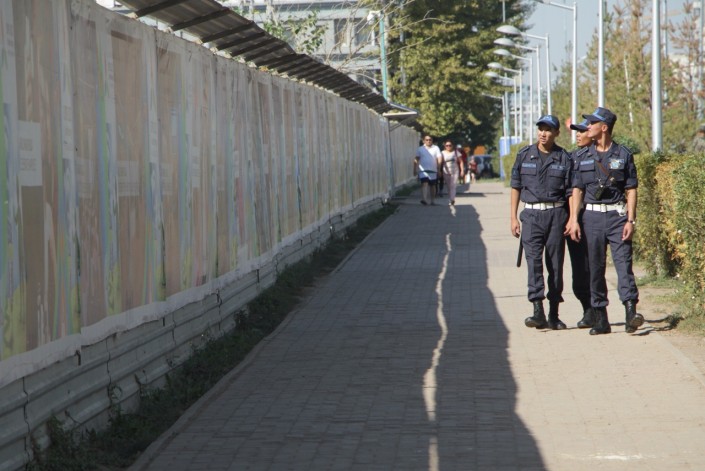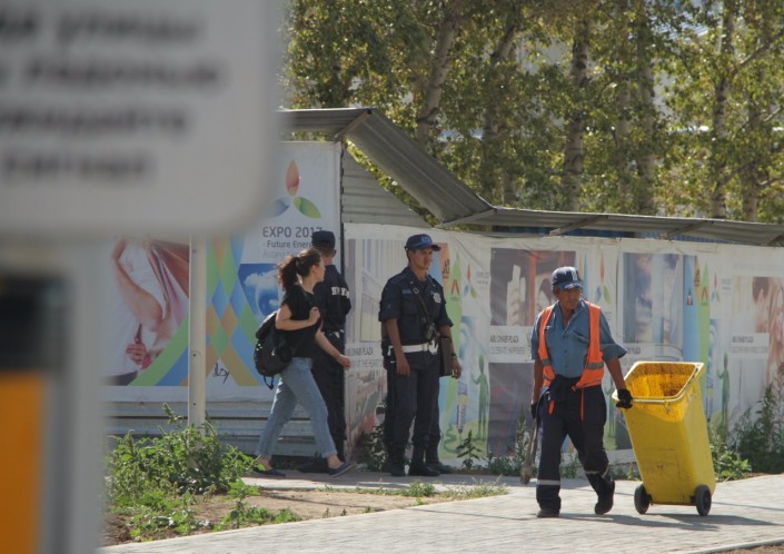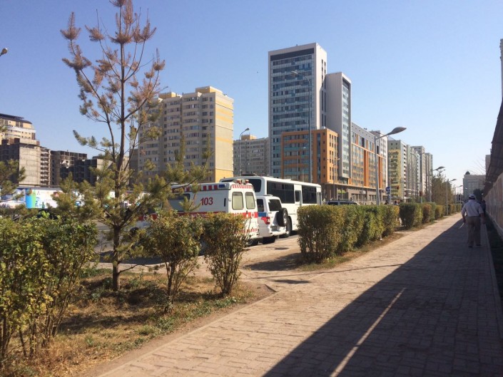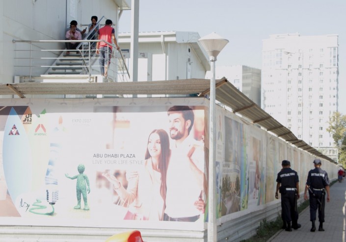 Корреспондент Tengrinews.kz побывал на месте инцидента, случившегося накануне вечером. Обстановка на площадке "Абу-Даби Плаза" спокойная.