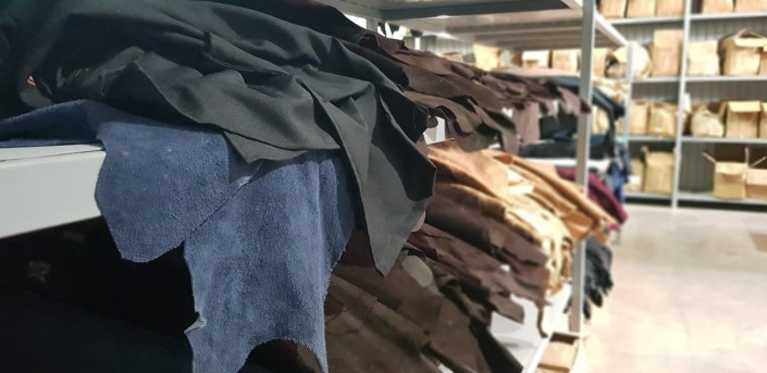 А это стеллажи с кожей. Для производства обуви здесь используют только кожу первого сорта. Пока ее привозят из-за рубежа. В будущем руководство планирует обучить местных скорняков правильной обработке кожи. Это позволит снизить себестоимость продукции.