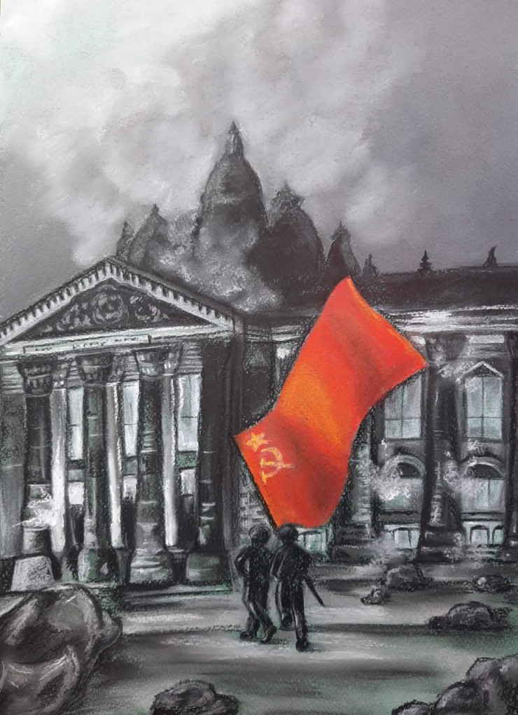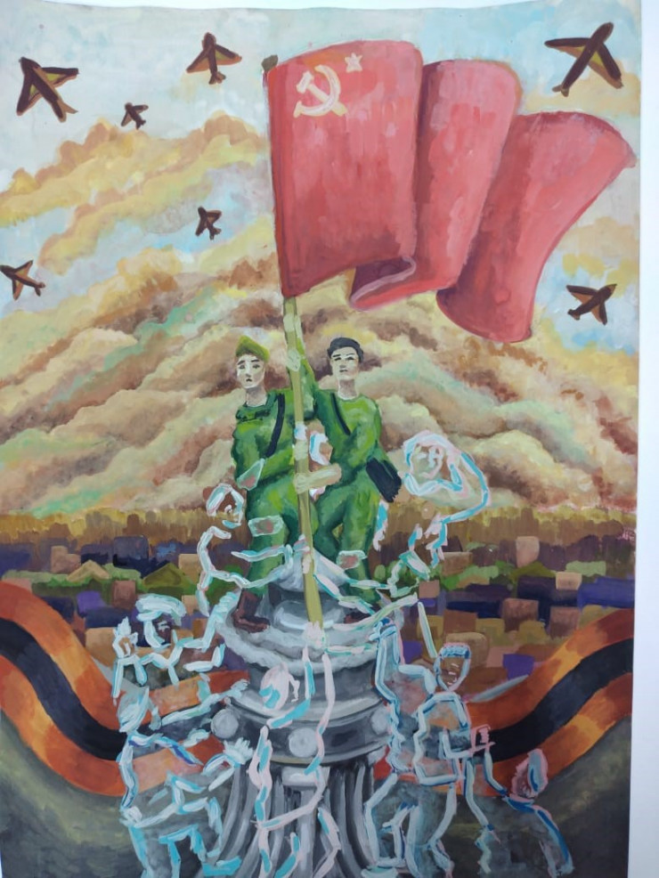 Сотни юных художников со всего Казахстана изъявили желание через призму своего творчества отразить исторический момент, когда 30 апреля 1945 года, за несколько дней до Победы, советские солдаты первыми водрузили Красное знамя на фасаде Рейхстага. По итогам конкурса выбраны 18 финалистов, чьи картины попадут в документальный фильм казахстанско-российского режиссера Константина Харалампидиса - "Батыры Великой Отечественной: Рахимжан Кошкарбаев и Григорий Булатов".