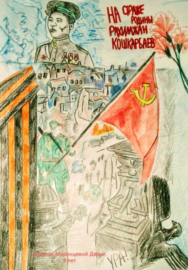 "Пример для всех поколений". Подвиг Рахимжана Кошкарбаева и Григория Булатова в рисунках детей