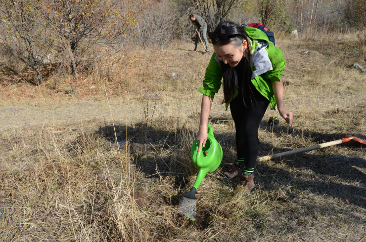 Сотрудники национального парка также приняли участие в посадке, координируя действия волонтеров и подсказывая им, где лучше разместить саженцы. По словам начальника отдела научно-исследовательских работ и горного агробиоразнообразия Салтанат Усербаевой, на территории Иле-Алатауского парка ежегодно высаживают более 42 гектаров деревьев.