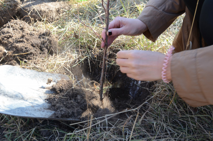 Горожане с большим энтузиазмом приступили к посадке саженцев.
