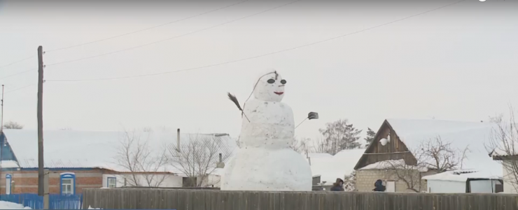 "Снеговика мы строили вдвоем. Вес у него где-то больше десяти тонн. Высота тоже больше семи метров. Строили его мы при помощи веревки. И были неудачные случаи, когда мы строили его", - сказал школьник Максим Хайруллин.