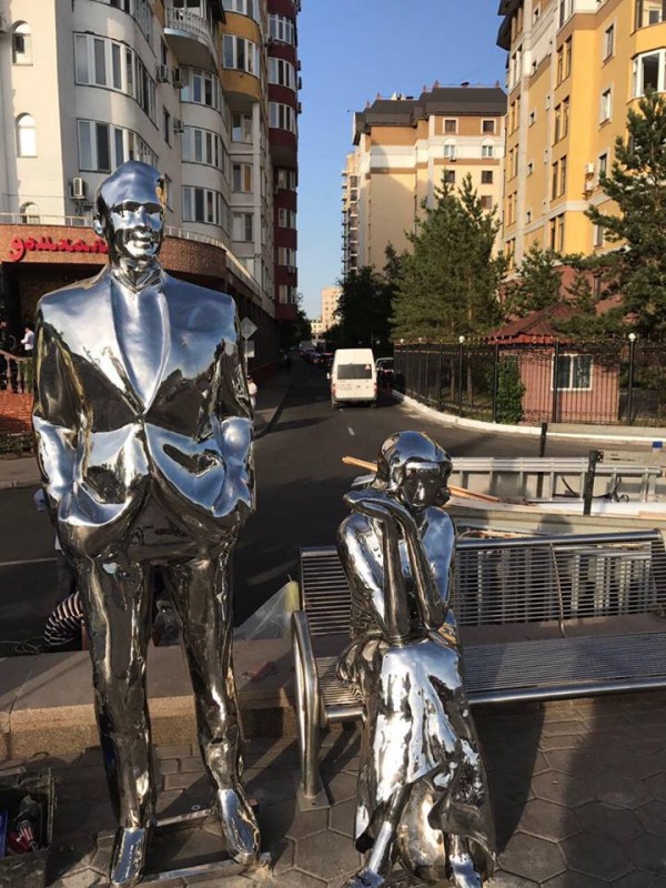 Хромированная фигура велосипедиста установлена по улице Кенесары у здания Министерства сельского хозяйства.