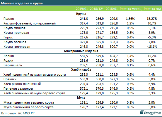 Цены на крупы по итогам января текущего года поднялись менее чем на 2 процента за месяц, на макаронные изделия - менее чем на 1,5 процента. В сегменте хлебобулочных изделий и сдобы незначительно вырос в цене лишь пшеничный хлеб высшего сорта (+0,9 процента за месяц), цены на прочую продукцию поменялись еще меньше. Также менее чем на 1 процент увеличились цены на муку.