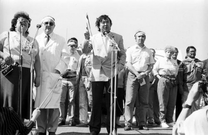 28 февраля 1989 года состоялся митинг. Мы объявили, что каждый, кто подпишет наш девиз "Полигон жойылсын!" будет считаться членами "Невада-Семипалатинск" - первого советского антиядерного движения.