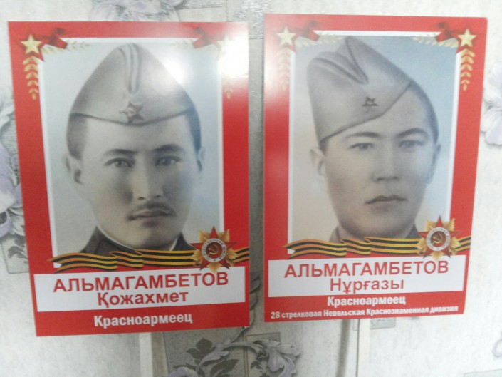 "В этом году с гордостью понесу фотографии своих прадедов по центральной улице нашего города. На Великую Отечественную войну ушли сразу два родных брата - Кожахмет и Нургазы Альмагамбетовы.