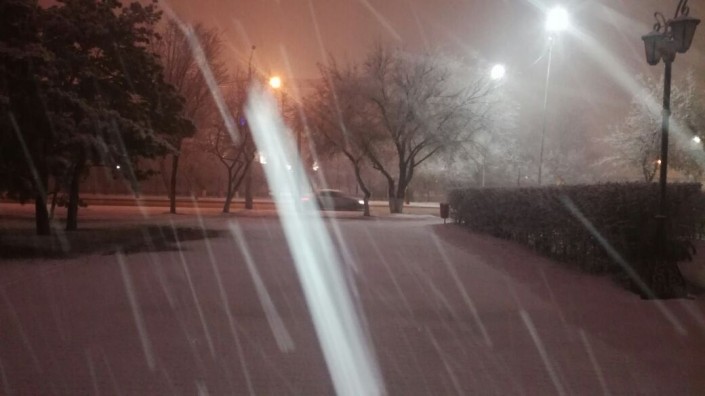 В Астане вечером 18 апреля пошел сильный снег. Согласно прогнозам синоптиков, осадки ожидаются до утра четверга.