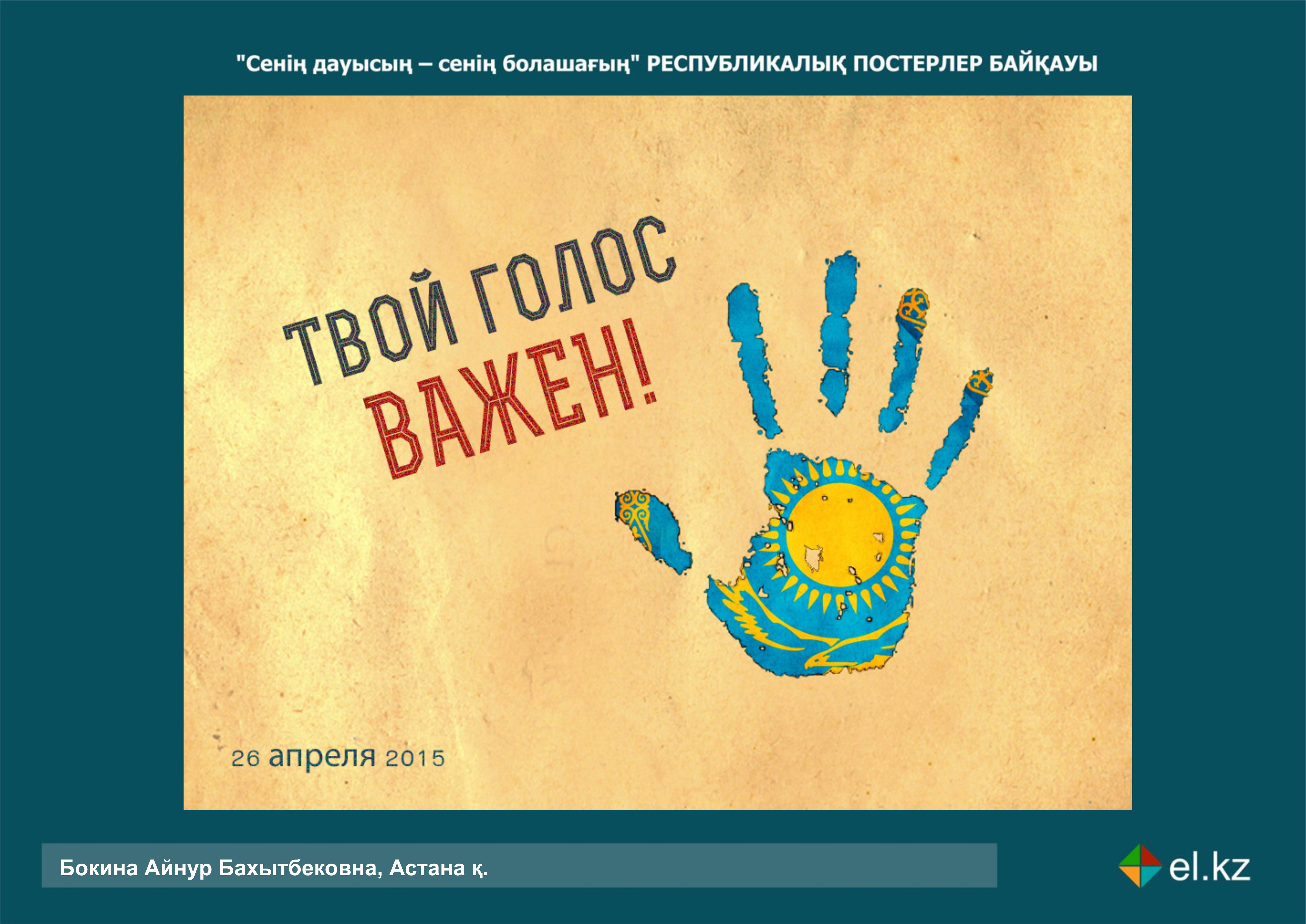 Определен победитель конкурса постеров в преддверии выборов в РК Работа победителя Еркебулана Казкенова.