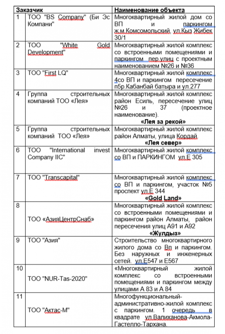 "Напоминаем, что привлечение средств дольщиков без соответствующего разрешения запрещается законодательством Республики Казахстан "О долевом участии в жилищном строительстве", при этом предусмотрена ответственность по статье 320 КоАП, а также статье 214 УК за занятие запрещенными видами предпринимательской деятельности.