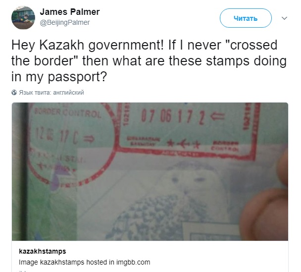 Между тем, журналист Джеймс Палмер опубликовал в Twitter фотографию паспорта со штампами о пересечении границы.