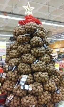 Креативят и супермаркеты. Елку из мешков с картошкой в соцсетях в шутку называют "белорусской".