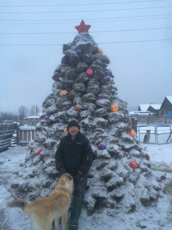 Житель Якутии собрал елку из кизяка. Необычный вариант оценили тысячи пользователей социальных сетей.