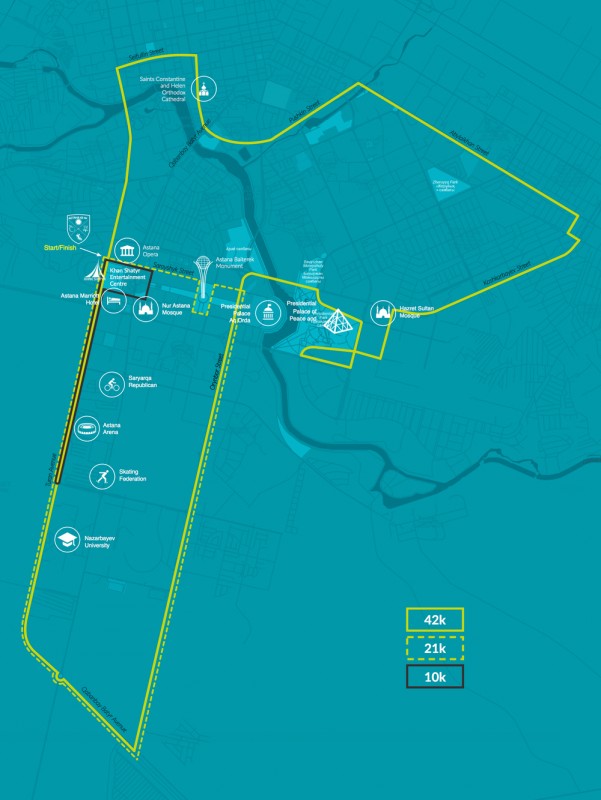 Как пояснила основатель марафона Гаухар Брамлей-Фентон, маршрут был выстроен совместно с акиматом Астаны, чтобы показать столицу Казахстана в более выгодном свете. "Мы пробегаем по всем трем районам Астаны, соответственно, люди увидят все красивые стороны нашей столицы. Маршрут построен таким образом, чтобы открывать город поэтапно. За шесть часов, когда у нас последний бегун пробежит, мы позволим транспорту поэтапно открываться", - отметила Брамлей-Фентон.