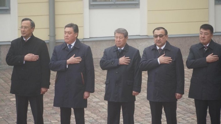 Члены казахстанской делегации и финские чиновники ожидали начала церемонии.
