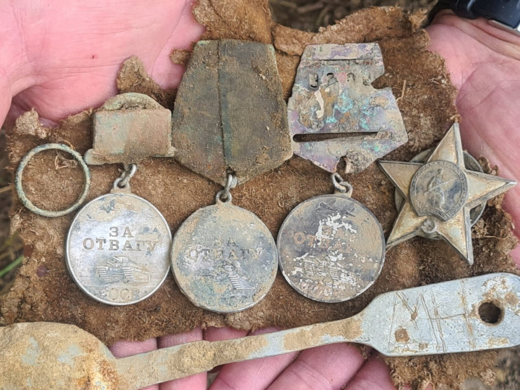 "В окрестностях поселка Красновка Зеленоградского округа поисковики нашли воронку с останками восьми советских воинов. Тела солдат лежали друг на друге. При погибших найден орден Красной Звезды, три медали "За отвагу", а также армейская столовая ложка с нацарапанной фамилией Галкин (Гапкин) М.Н. Одна из медалей и помогла установить личность нашего земляка", - сообщил Шитов.