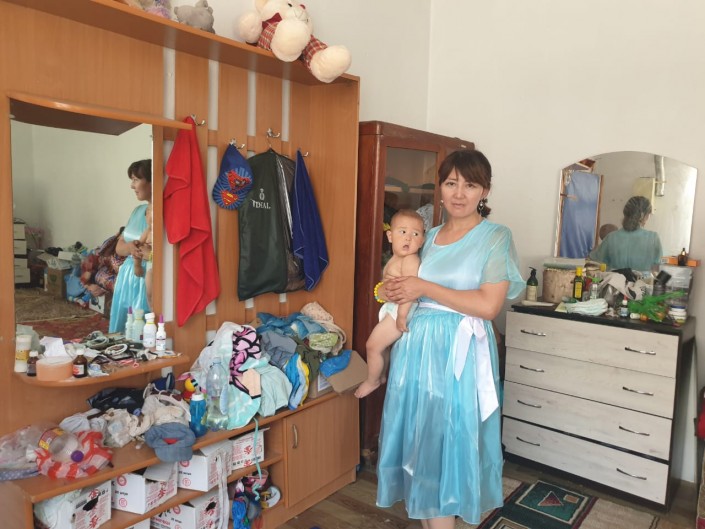 40-летняя женщина год назад развелась с мужем. По ее словам, она ушла от него, устав от постоянных унижений. Говорит, что он якобы поднимал руку и на детей. Ее бывший супруг - инвалид 2-й группы. Работать Гаухар сейчас не может, она ухаживает за годовалым сыном. Говорит, что, устав от такой жизни, она пошла в районный акимат за помощью.