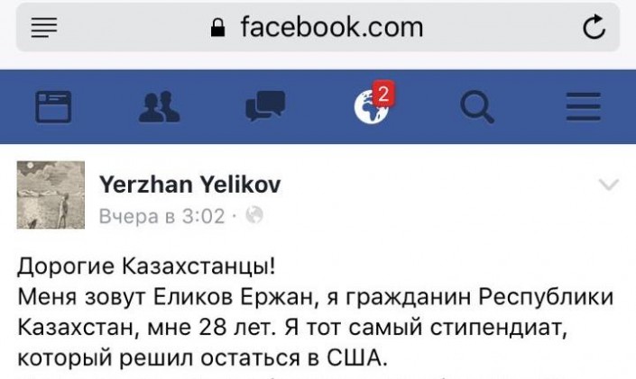 Кроме того, как известно, в ночь на 13 октября в Facebook появился пост пользователя Yerzhan Yelikov. В МВД Казахстана заявили, что проверяют подлинность аккаунта.