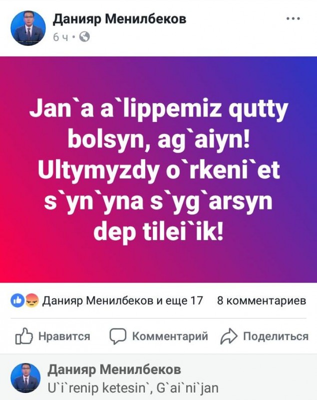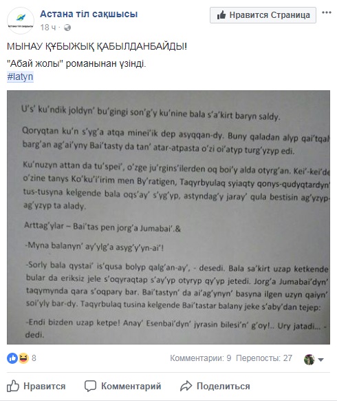Казахстанские пользователи социальных сетей начали выкладывать посты на латинице, передает Tengrinews.kz