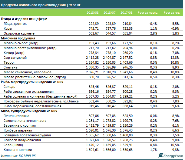 В то же время среди продукции животного происхождения наметилось удорожание. Так, за август на 1 процент подскочили цены на мороженую рыбу, на 1,7 процента - на конину, и сразу на 2,8 процента - на куриные окорочка.