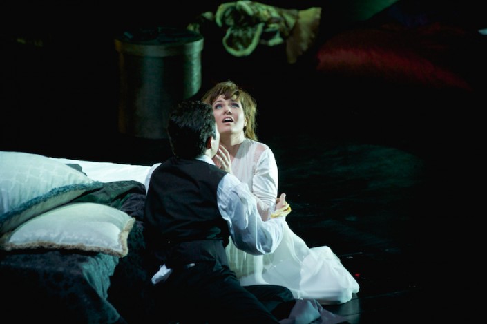 "Самое прекрасное в работе с Пласидо Доминго, что ты выходишь к зрителю и знаешь, что сейчас все может измениться. С ним очень легко и приятно работать. Виолетта у меня каждый раз другая. Это та партия, в которой нигде не спрячешься, да и незачем. Момент смерти Виолетты бывает разный. В одной постановке она должна уходить назад, как в другой мир, в следующей постановке она падает в объятия Альфреда, в третьей постановке Виолетта единственная, кто остается, все остальные пропадают. В этой постановке показана классическая смерть", - поделилась исполнительница заглавной партии Марина Ребека.