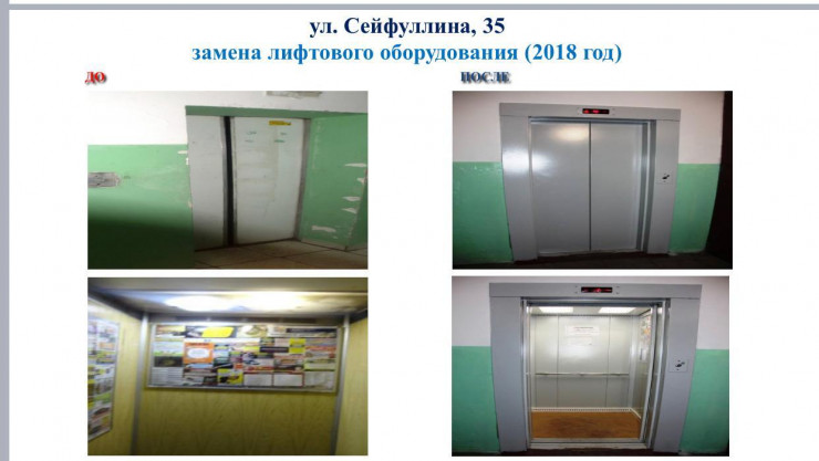 Так, за последние годы капремонтом охвачено свыше 120 жилых комплексов, а также заменены порядка 150 лифтов в 72 ЖК. Акиматом приняты все меры для продолжения модернизации жилищного фонда.